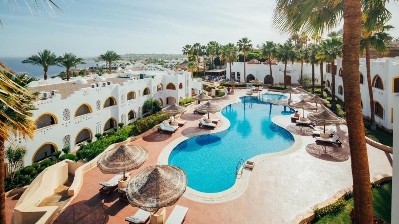 Domina Coral Bey Resort 5* Това е най-големия комплекс на територията на Шарм Ел Шейх с площ над 1000 000 кв.м разпределени в 6 квартала. Предвижването е с колички. Нашите туристи се настаняват в квартал Oazis или Bella Vista в стандартни стаи, като 90 % от тях са с гледка море или басейн . Настаняване на дете или трети възрастен е на разтегателен диван.