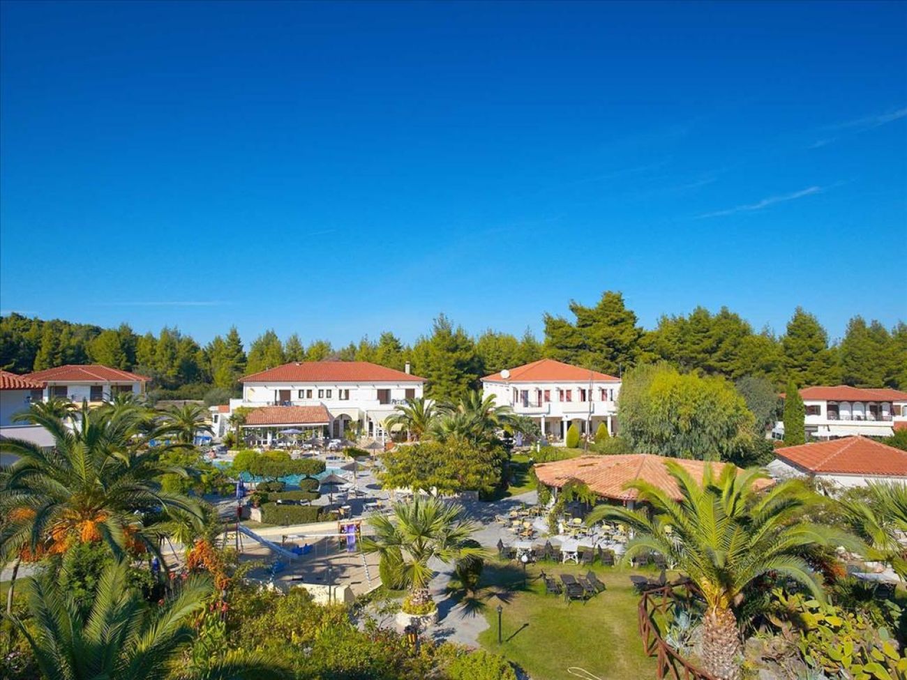 Полуостров Касандра, на 1,5 км. от Палиури, на 115 км. от летище "Македония" Солун. Територия 40 000 кв. м.