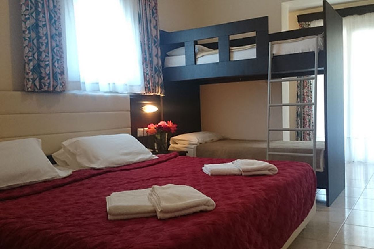 Quadruple Room 2 единични легла и двуетажни легла.