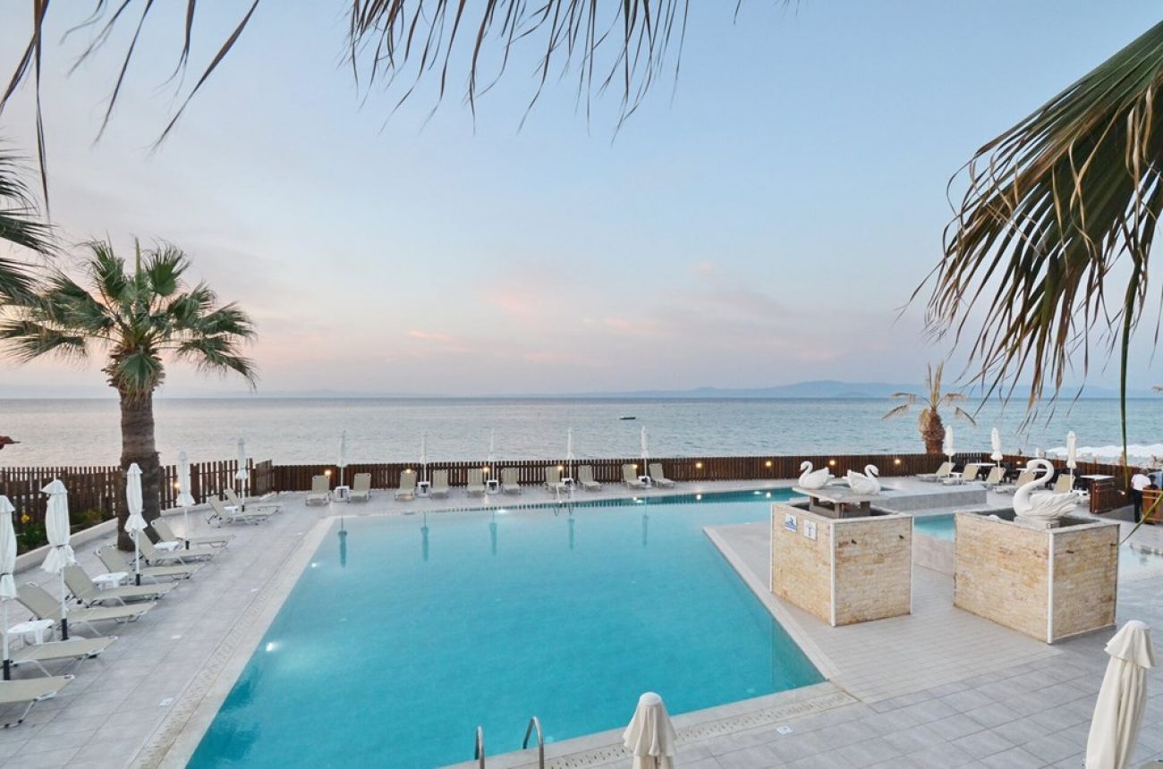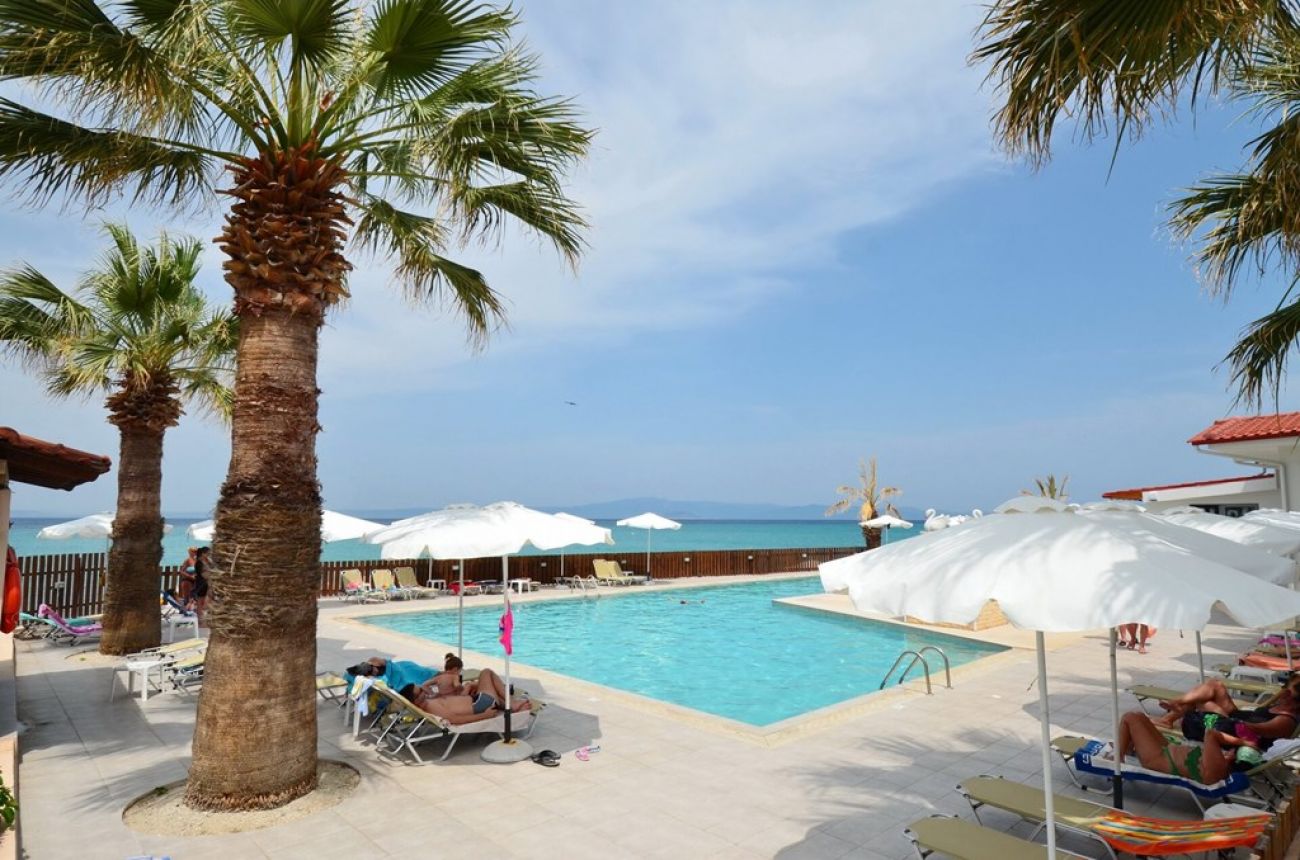 Хотелът е построен в приятен средиземноморски стил в Ханиоти, на 95 км. от летището в Солун. Разполага с уютна територия, на първа брегова ивица, много добър избор за почивка. Реновиран през 2015 г., състои се от общо 5 двуетажни сгради и 5 бунагала.