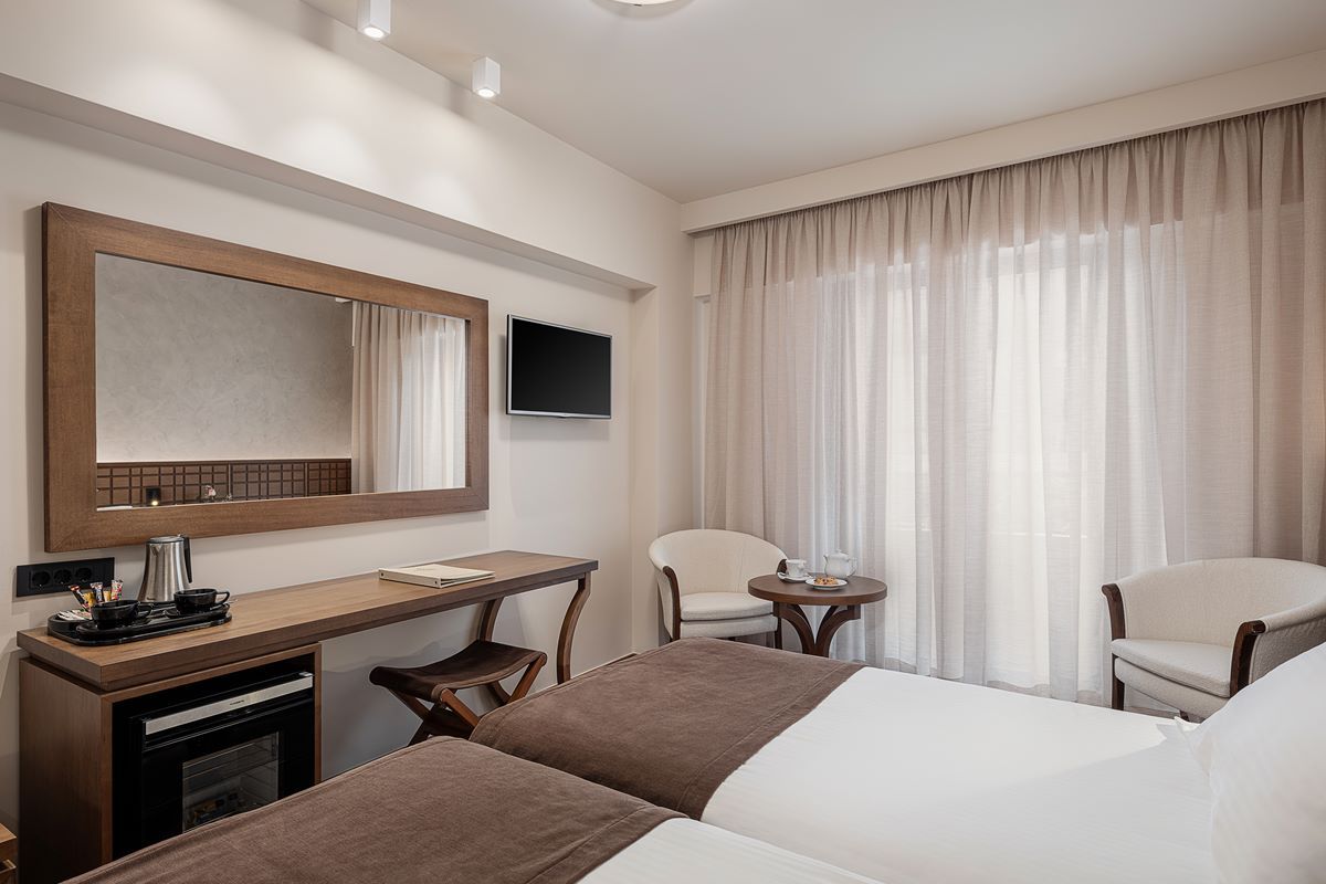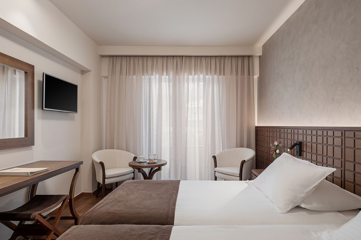 Conveniently located only 500m from the centre of the Old Town of Chania, close to Nea Chora Beach, it features a swimming pool and a lovely furnished courtyard with snack bar. Our rooms are classically decorated and feature soundproofed windows and air conditioning. Other facilities include a satellite TV, safety box, hairdryer and free Wi-Fi. Breakfast consists of a buffet, with a great variety of hot and cold dishes and seasonal fruit salads. The restaurant serves traditional Cretan cuisine. The hotel's indoor bar features an open fireplace and a stone archway. Recently fitted with modern equipment and luxurious decoration, the newly refurbished conference centre holds from 10 to 250 persons and is perfect for all kinds of business functions or social events. Civitel Akali Hotel is just 1km from the port of Chania, while airport is at 17km and Souda port at 7km.