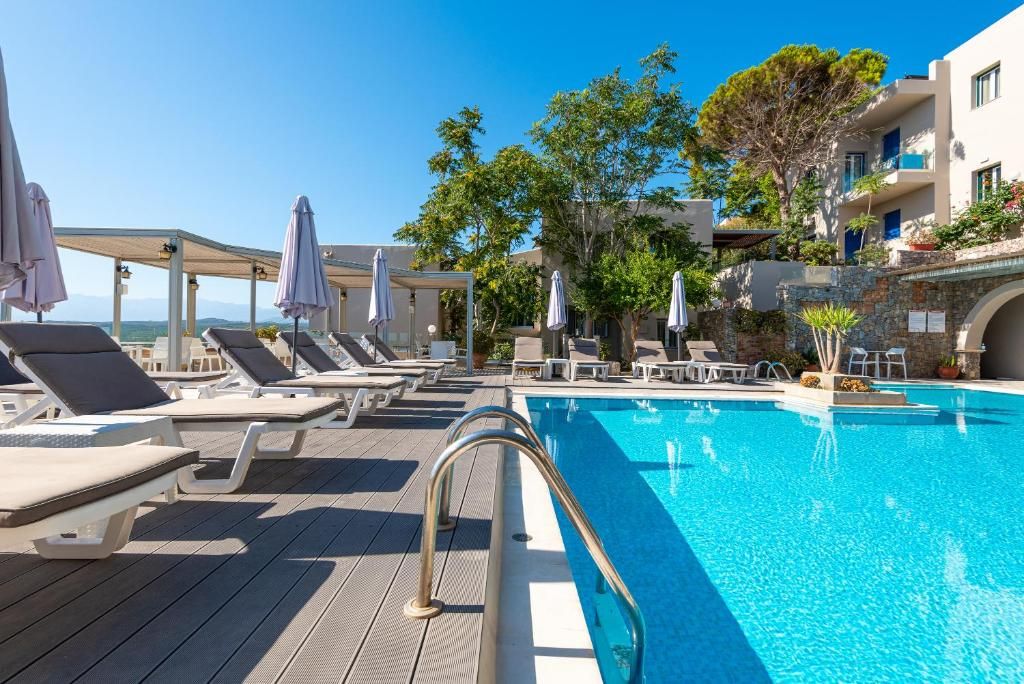 Нашият панорамен хотел е модерен, елегантен 3-звезден хотел с изглед към морето, идеален за една очарователна ваканция. Апартаментите предлагат модерни удобства и са просторни и спокойни. Насладете се на играта с децата си край басейна, под горещото критско слънце. Ще имате всички стоки, така че можете просто да се отпуснете и да презаредите енергията си след цял ден на приключения.