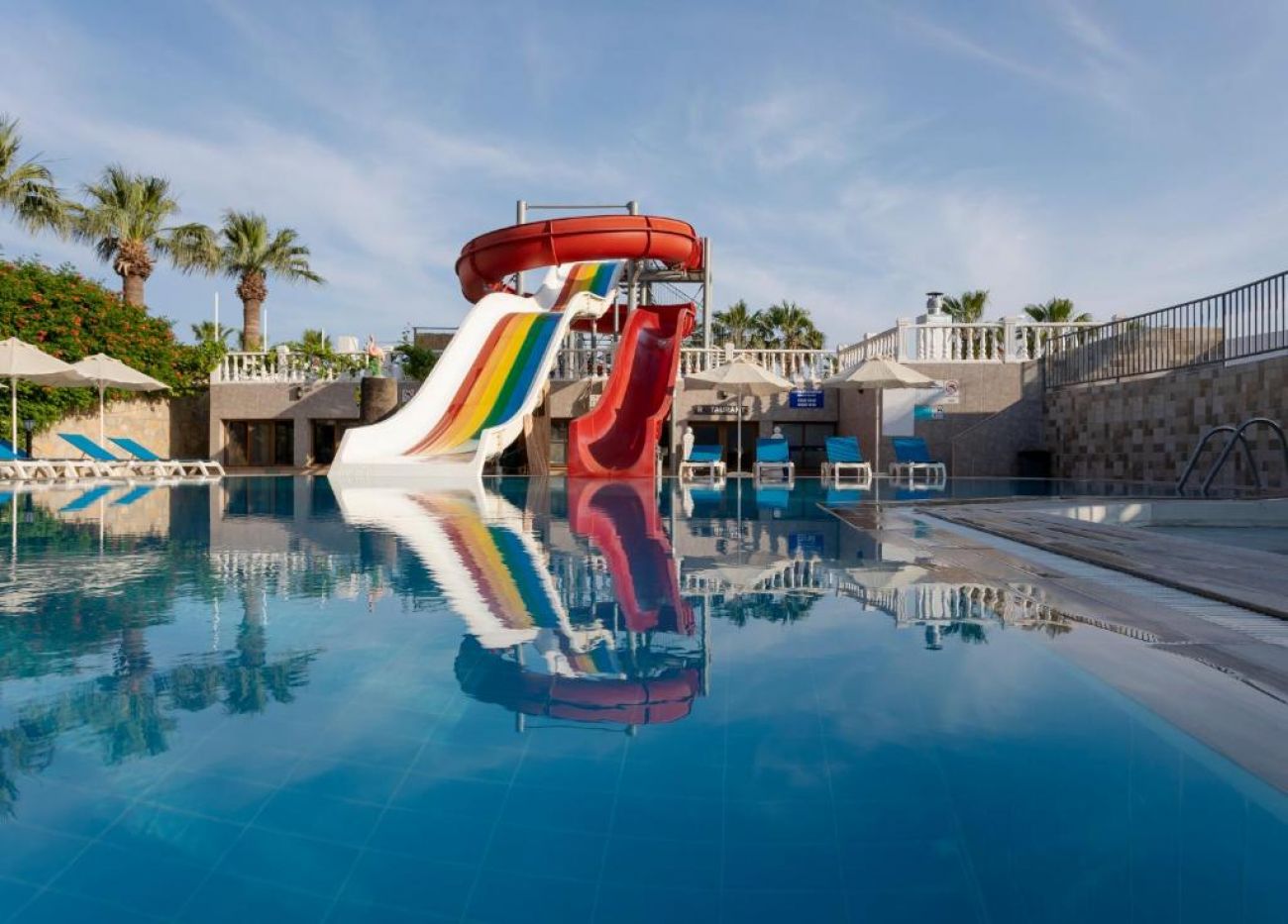 Хотелът разполага с основен ресторант, 2 бара - Beach&Pool Bar и Lobby Bar, плувен басейн, 2 водни пързалки, сейф - на рецепция, паркинг.
