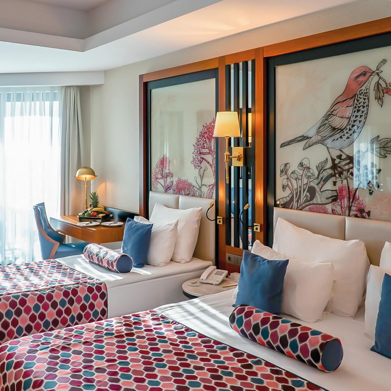 Хотелът разполага със 606 стаи, 402 от тях са стандартни и 102 са фемили. Всяка една е оборудвана с климатик, сателитна телевизия, телефон, баня с душ, сешоар, мини бар, сейф(безплатен), балкон.