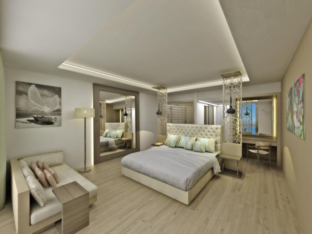 Хотелът се състои от 349 стаи: 238 клубни стаи (гледка градина или гледка море), 31 клубни семейни стаи с гледка градина, 14 стаи Beach side и 66 делукс стаи. Всички стаи са оборудвани с: баня с душ, сешоар, климатик, телевизор, телефон, сет за кафе и чай (безплатен), минибар (безплатен, зарежда се веднъж при пристигане с безалкохолни напитки и вода, през останалите дни - веднъж на ден вода и газирана вода), сейф (платено), смяна на спалното бельо – 3 пъти седмично.