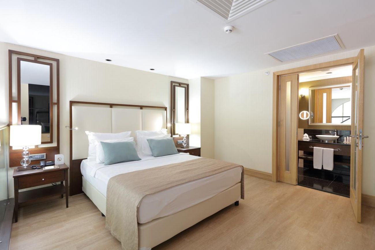 Хотелът разполага с общо 423 стаи, разположени в 5-етажна основна сградa Main building, от които 295 Deluxe Standard Rooms (изглед планина или страничен изглед море – 36 м2), 38 Deluxe Standard Large Rooms (изглед планина или страничен изглед море, 42-46 м2), 73 Duplex Family Room (на два етажа, 2 спални, 2 бани – 65 м2), 2 Duplex Family Executive (на два етажа, 2 спални, 2 бани – 79 м2), 6 Honeymoon Suite (спалн, кът за сядане, джакузи, 52-67 м2), 4 Honeymoon Suite Executive (спалня, кът за сядане, гардеробна, джакузи, изглед море – 79 м2), 1 Prestige Suite (на два етажа, 2 спални, кът за сядане, гардеробна, 2 бани, вана, джакузи – 149 м2), 2 Platinum Duplex Suite (на два етажа, 2 спални, 2 бани, директен достъп към общ басейн, страничен изглед към море – 79 м2), 2 Platinum Duplex Suite Executive (два етажа, 3 спални, всекидневна, кът за сядане и слънчеви бани, 3 бани, 2 вани, страничен изглед море – 165 м2).