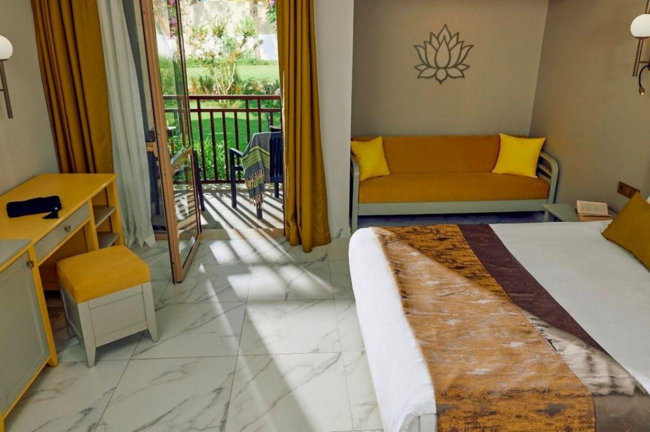 Хотелът разполага с общо 594 стаи, разположени в 20 дву и три-етажни къщички, от които 370 стандартни стаи Standard room (24 м2), 126 стандартни стаи с двуетажно легло Standard Room with Bunk Bed (24 м2), 92 фамилни стаи Family room (2 спални, 1 баня - 46 м2). Всички стаи са оборудвани с климатик, телевизор, телефон, баня с душ/вана, сешоар, чехли, минибар (вода, бира, безалкохолни напитки - безплатно), сейф (безплатен). Почистване на стаите - всеки ден, смяна на спално бельо и кърпи – 3 пъти в седмицата.
