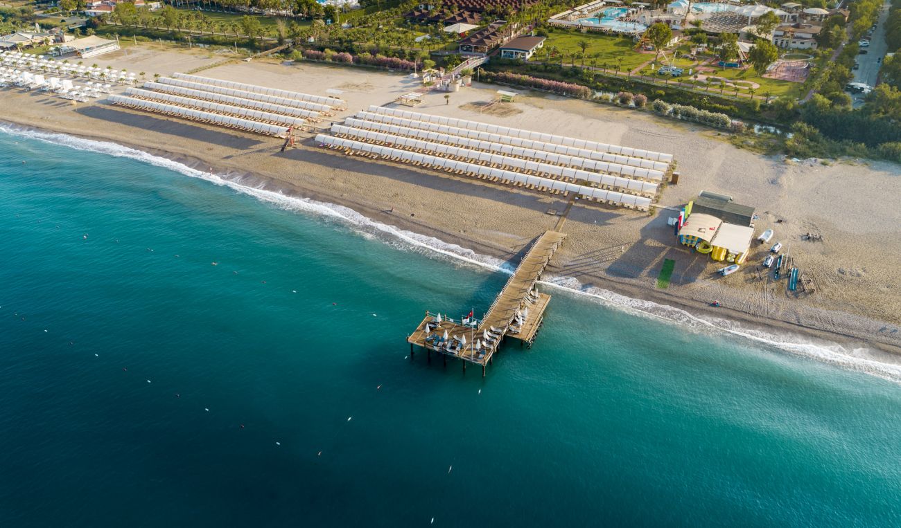 Намира се на 75 км. от летище Анталия, на 65 км. от центъра на Анталия, на 15 км. от центъра на Сиде, на брега на морето. Посторен през 1993 г., с обща площ 132.000 м2., реновиран през 2015 г. (екстериор, мебели и бани във всички стаи), 2019 г. (всички хотелски стаи в основна сграда), 2020 г. (всички клубни дуплекс стаи), 2023 г. (248 клубни стаи).