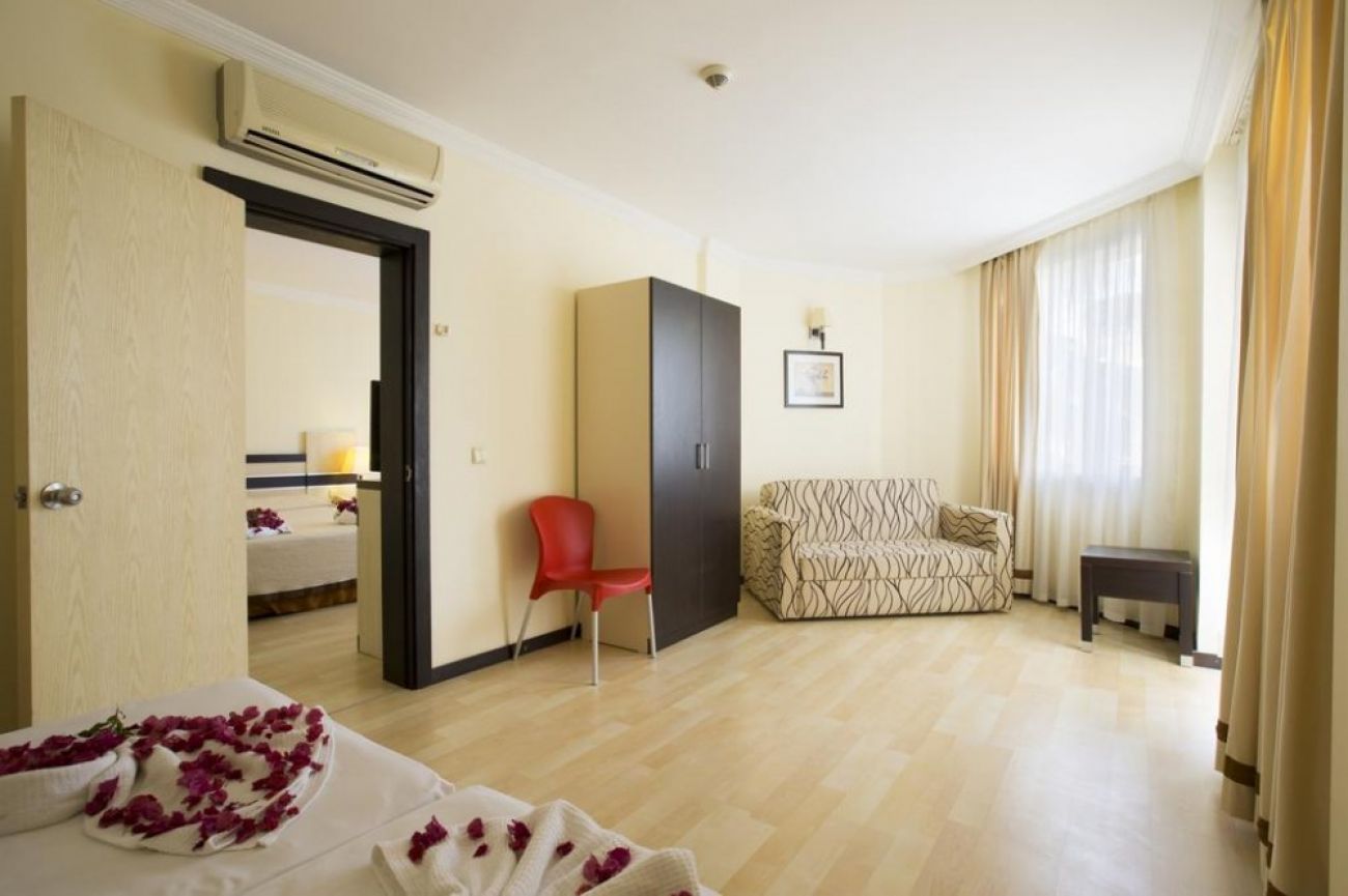 Намира се на 55 км от летище Анталия, на 60 км от центъра на Анталия, на 9 км от центъра на Сиде, на 300 м от брега на морето. Построен 2005 г. Частично реновиран 2022 г.