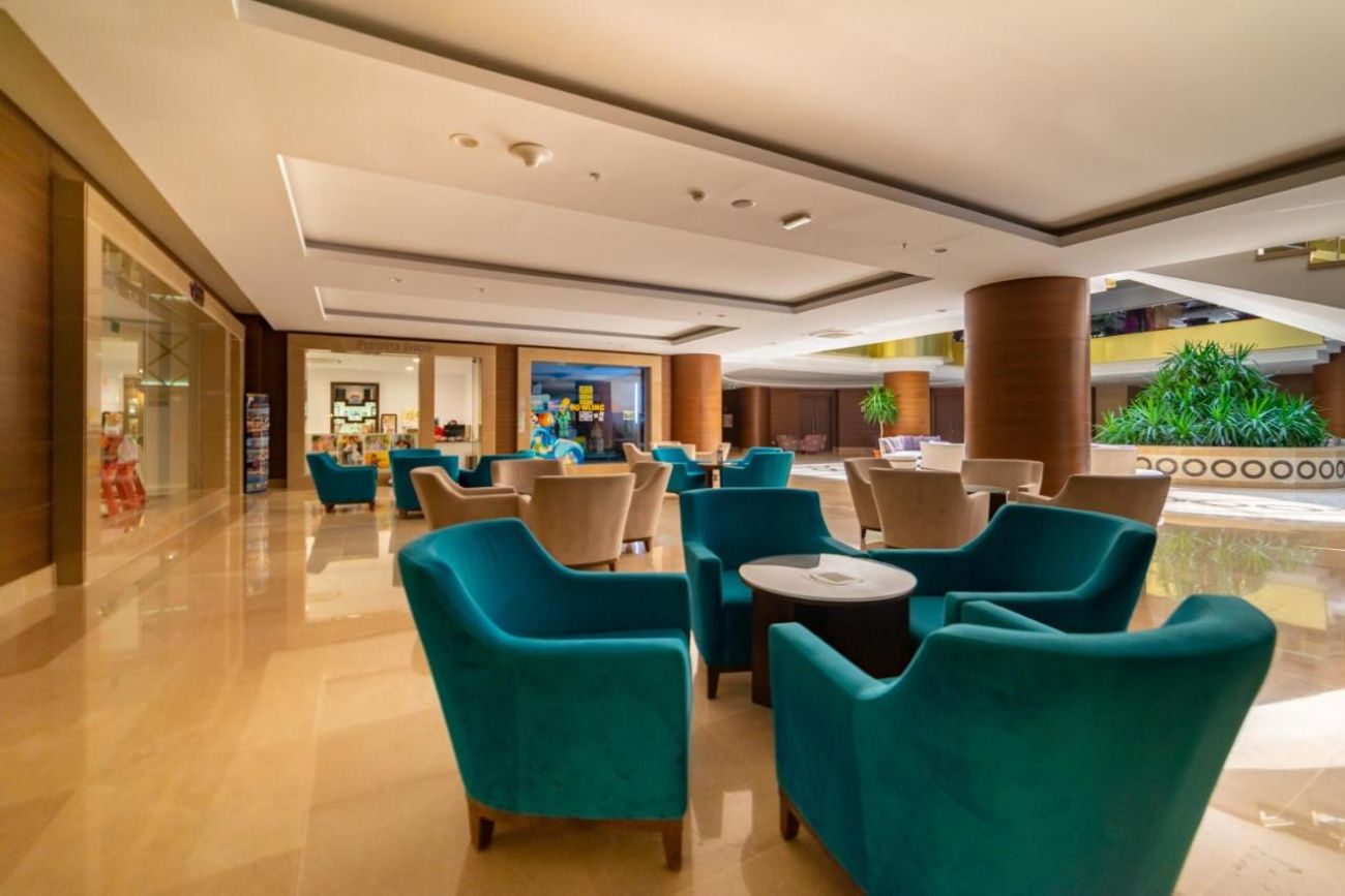 Основен ресторант, 4 а-ла-карт ресторанта (турски, китайски, италиански, рибен, с предварителна резервация, за едноседмичен престой едно безплатно посещение на един ресторант), кафе-сладкарница, 6 бара, 3 открити и 1 закрит басейн, водни пързалки, 2 тенис корта, амфитеатър, дискотека, конферентна зала, мини маркет. За децата: детски басейн, анимация, мини клуб (4-12 г.),тийни клуб (11-15 г.). Безплатни услуги: сауна, турска баня, фитнес, аеробика, плажен волейбол, тенис на маса, тенис корт, дартс, боча, анимация, Wi-Fi(в лоби). Платени услуги: Масаж, фризьор, лекар, химическо чистене, боулинг, билярд, електронни игри, игрални автомати, рент-а-кар, тенис екипировка, осветление за тенис корт, водни спортове.