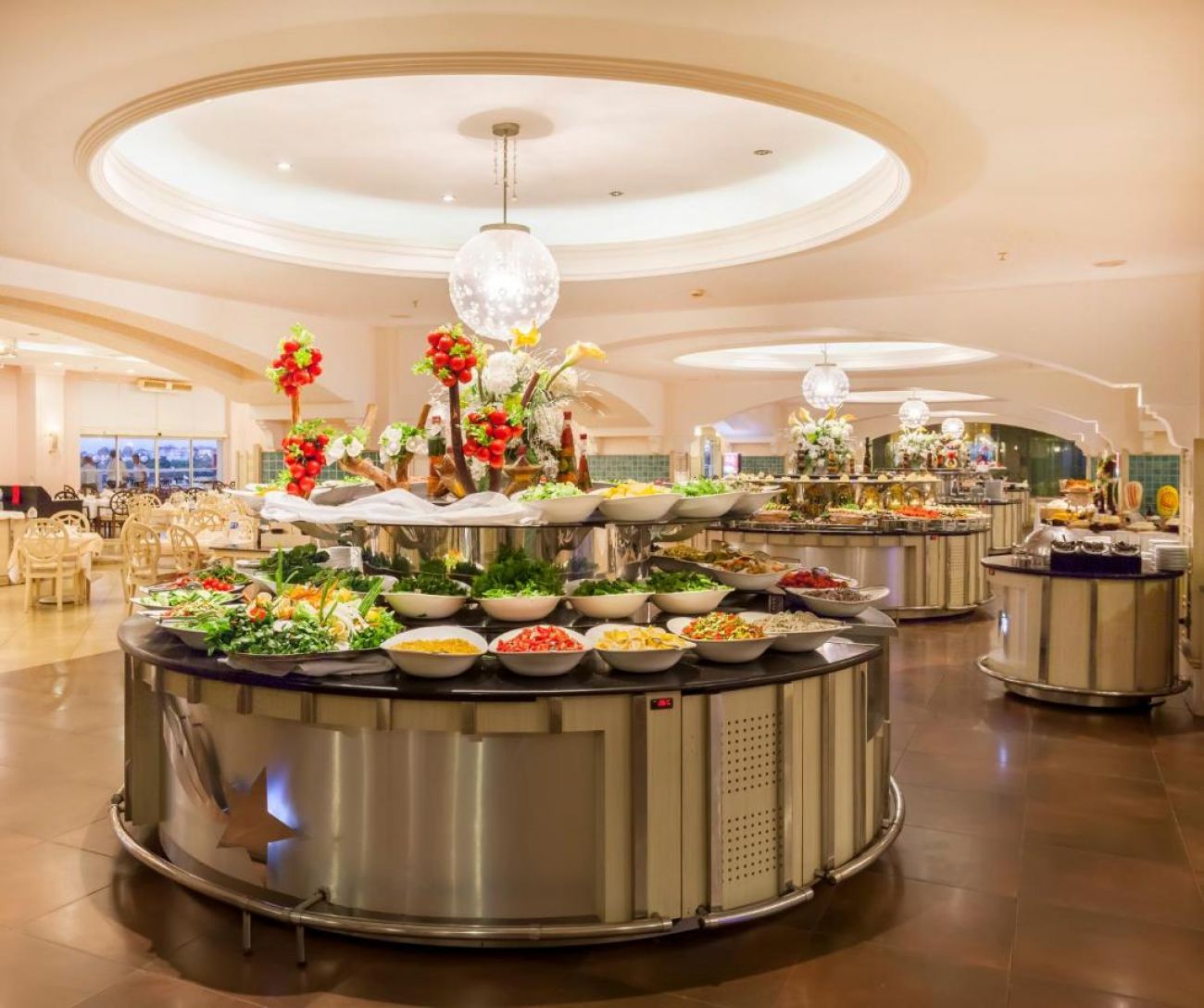 Хотелът разполага с основен ресторант, а-ла-карт ресторанти, 5 бара, дискотека, 3 открити басейна, закрит басейн, 5 водни пързалки, 2 конферентни зали, анимация. За децата: 4 детски басейна, детска площадка, мини клуб (4-12 г.),тийн клуб (12-16г.), 5 детски пързалки. Безплатни услуги - сауна, турска баня, фитнес, плажен волейбол, баскетбол, тенис на маса, анимационна програма, безжичен интерент (на лоби). Платени услуги: масаж, СПА, билярд, водни спортове, лекар, фризьорски салон, пералня, магазини, коли под наем.