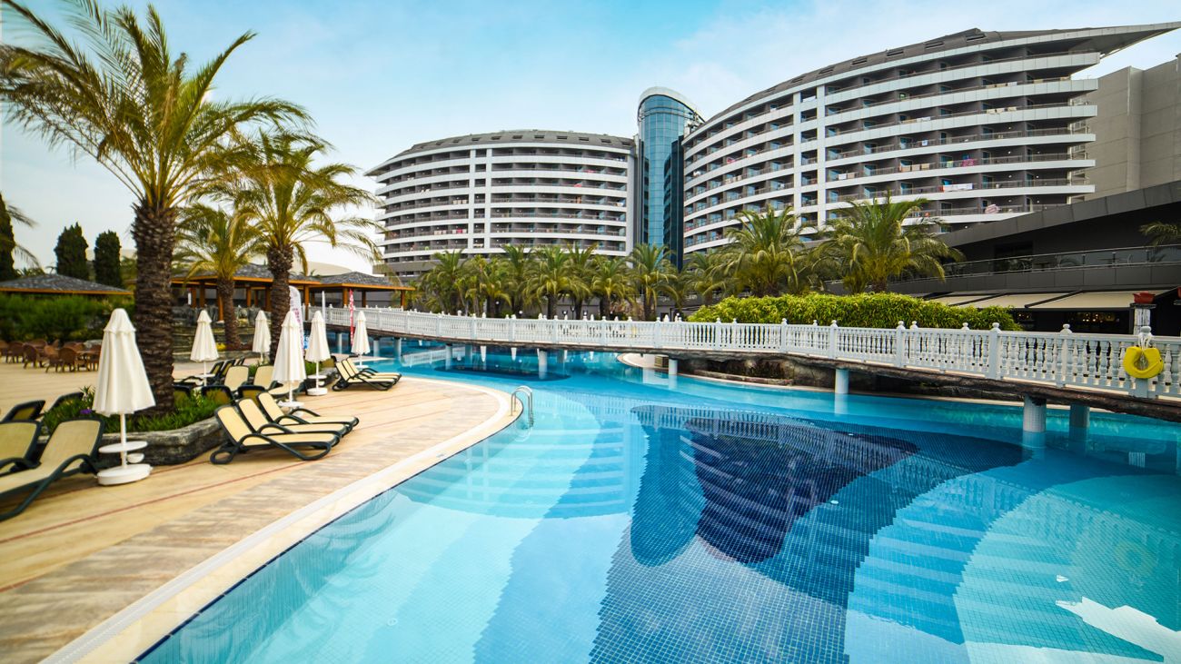 Хотелът се намира на 15 км. от летището на Анталия, на 17 км. от центъра на Анталия, в района на Лара, на брега на морето. Построен през 2005 г. с обща площ от 72 000 м2.