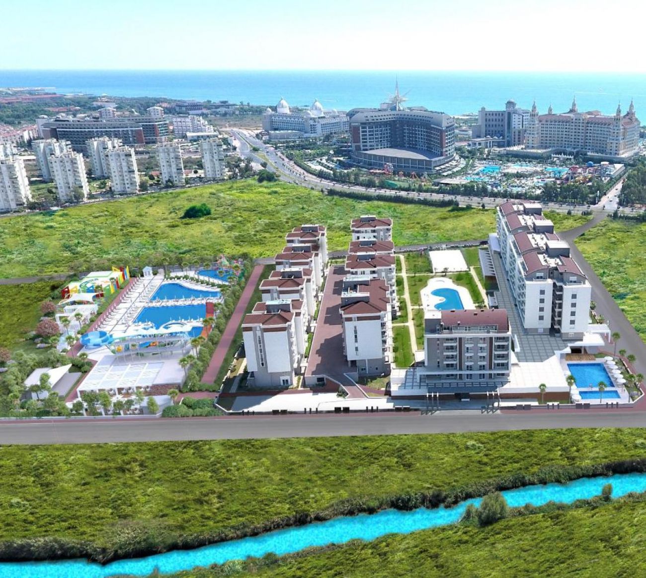 Намира се на 11 км. от летище Анталия, на 13 км. от центъра на Анталия, на 750 м. от брега на морето (през път). Построен през 2019г., с обща плащ 28 000 м2.