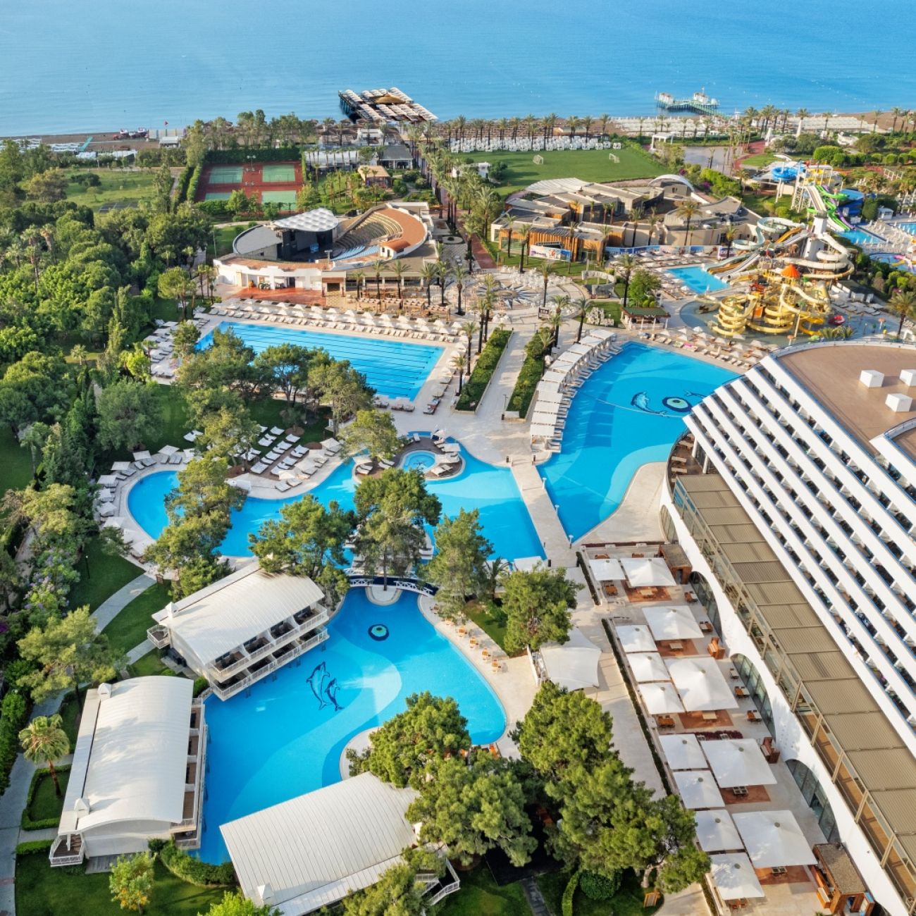 Намира се в района Лара, на брега на морето. На 12 км. от центъра и 15 км. от летището на Aнталия. Заема площ от 95 000 кв.м. Реновиран е през 2014год.