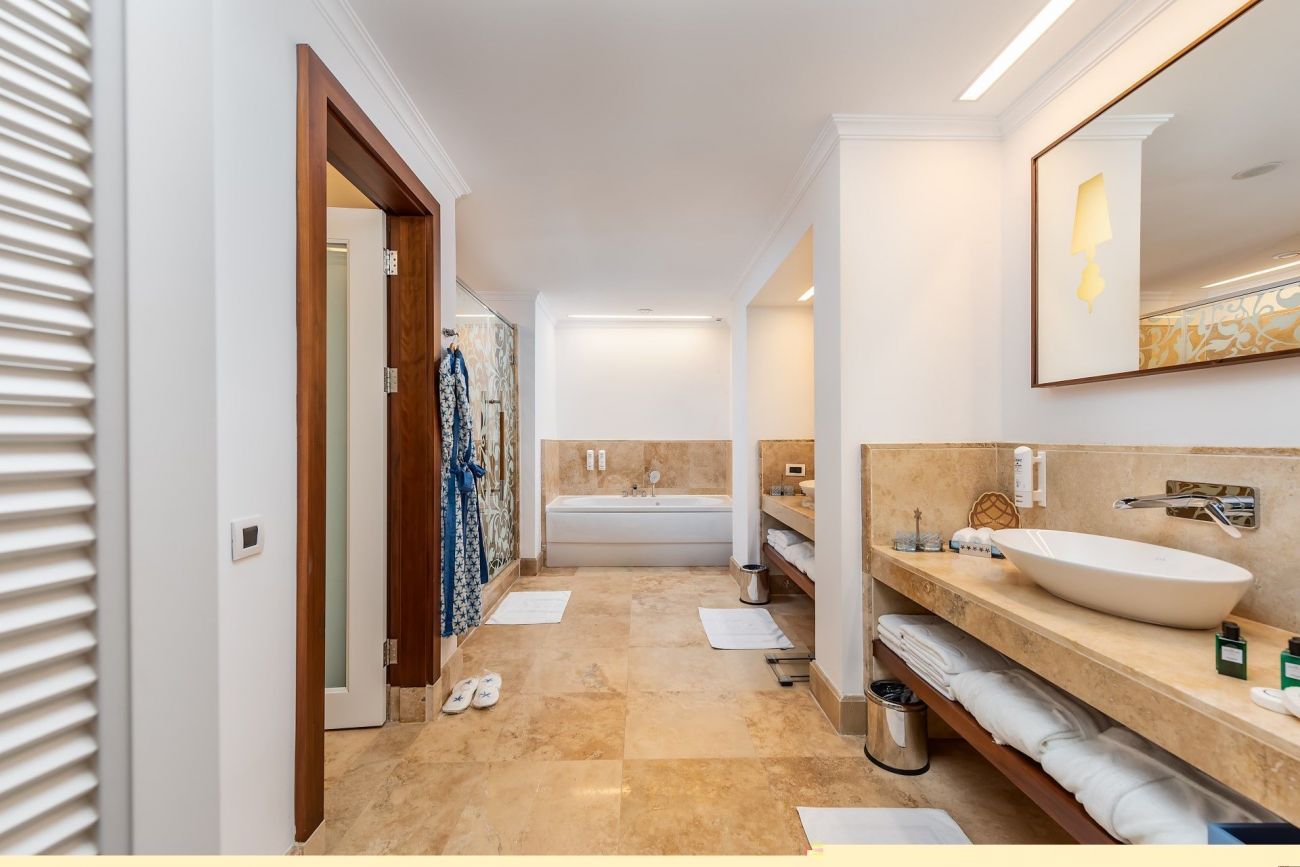 Хотелът разполага с общо 33 двуетажни вили, всички с вход към общия басейн с морска вода, 26 Azure Villas (с 2 спални помещения), 7 Azure Villas (с 3 спални помещения). Всички стаи са оборудвани с климатик, телевизор, телефон, 2 бани с вана/душ, сешоар, халат и пантофи, ютия, минибар (безплатен), сейф (срещу депозит), кафе Lavazza/чай. Почистване на стаите - всеки ден, смяна на спално бельо и кърпи - 3 пъти седмично.