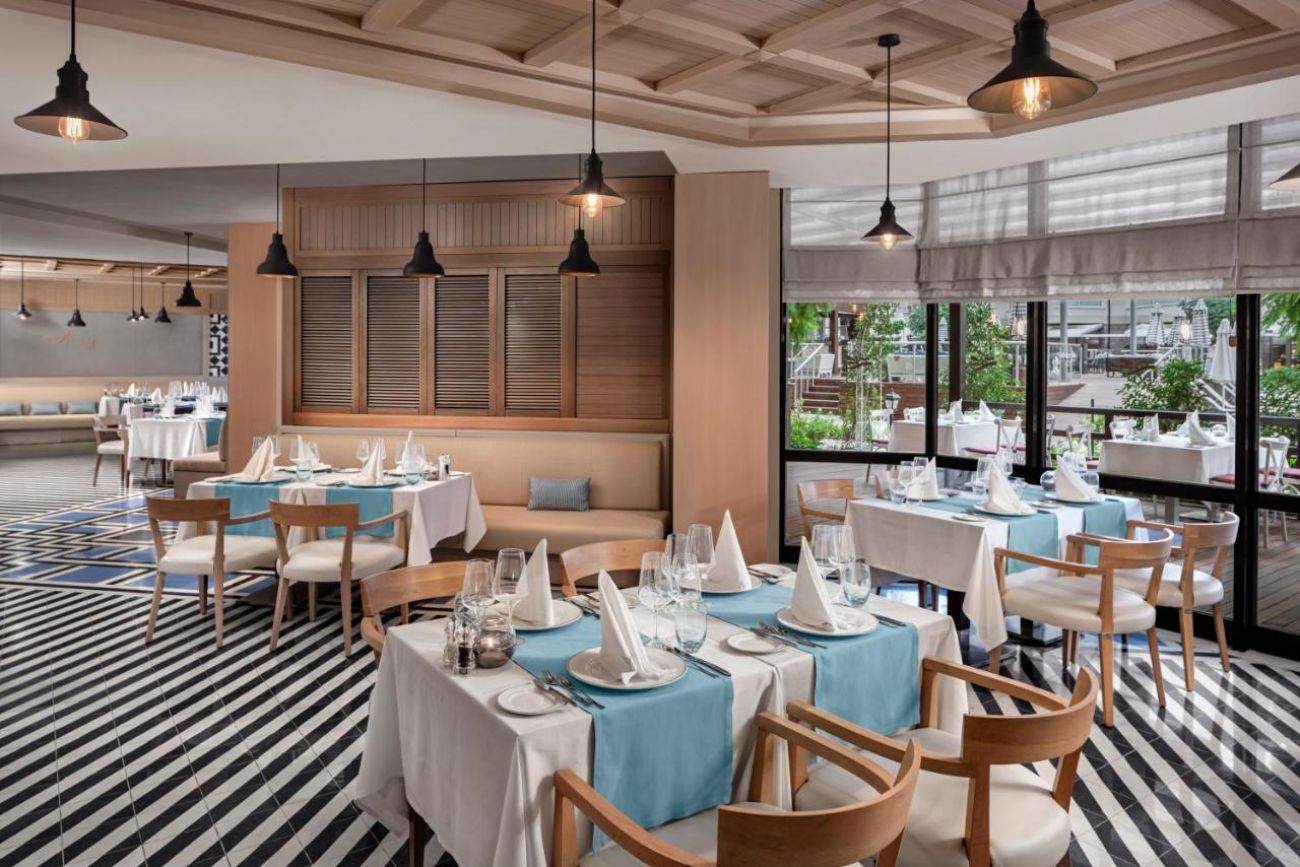 Основен ресторант, вегетарианско меню, 4 a-лa-карт ресторанта (средиземноморски, китайски, интернационален, турски – с предварително записване, за времето на престоя, едно посещение във всеки ресторант – безплатно), 7 бара (един от тях е отворен 24 часа), 2 открити басейна (2300 и 1400 кв.м.), 2 закрити басейна, водни пързалки, анимация, амфитеатър, кино, жива музика, дискотека (безплатно)