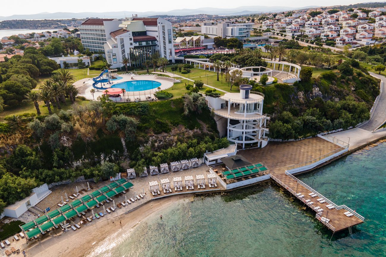 Хотелът се намира на 90 км от летище Измир, на 4км от центъра на Чешме, на 10 км от Алачатъ. Хотелът предлага уникална природа, чисто море и прекрасна гледка към остров Хиос.