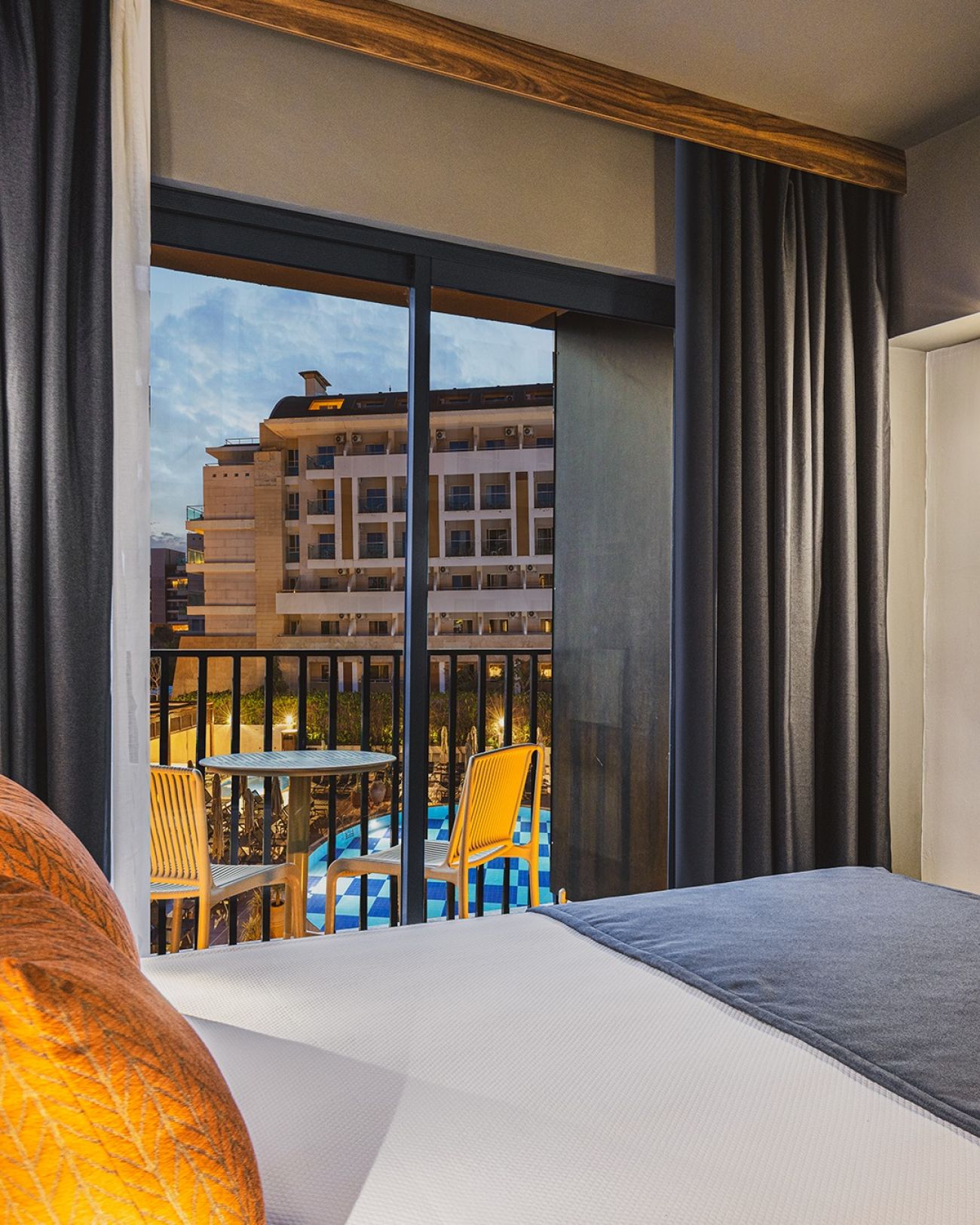 Хотелът разполага с общо 327 стаи, разположени в една 6-етажна сграда, от които Standard Deluxe (18-24 м2), Deluxe Family (32-48 м2). Всички стаи са оборудвани с климатик, телевизор, телефон, баня с душ, сешоар, минибар (еднократно при пристигане - безплатно, доп. зареждане - срещу доплащане), сет за кафе/чай, сейф, балкон.. Почистване на стаите - всеки ден, смяна на спално бельо и смяна на кърпите - на всеки 2 дни.