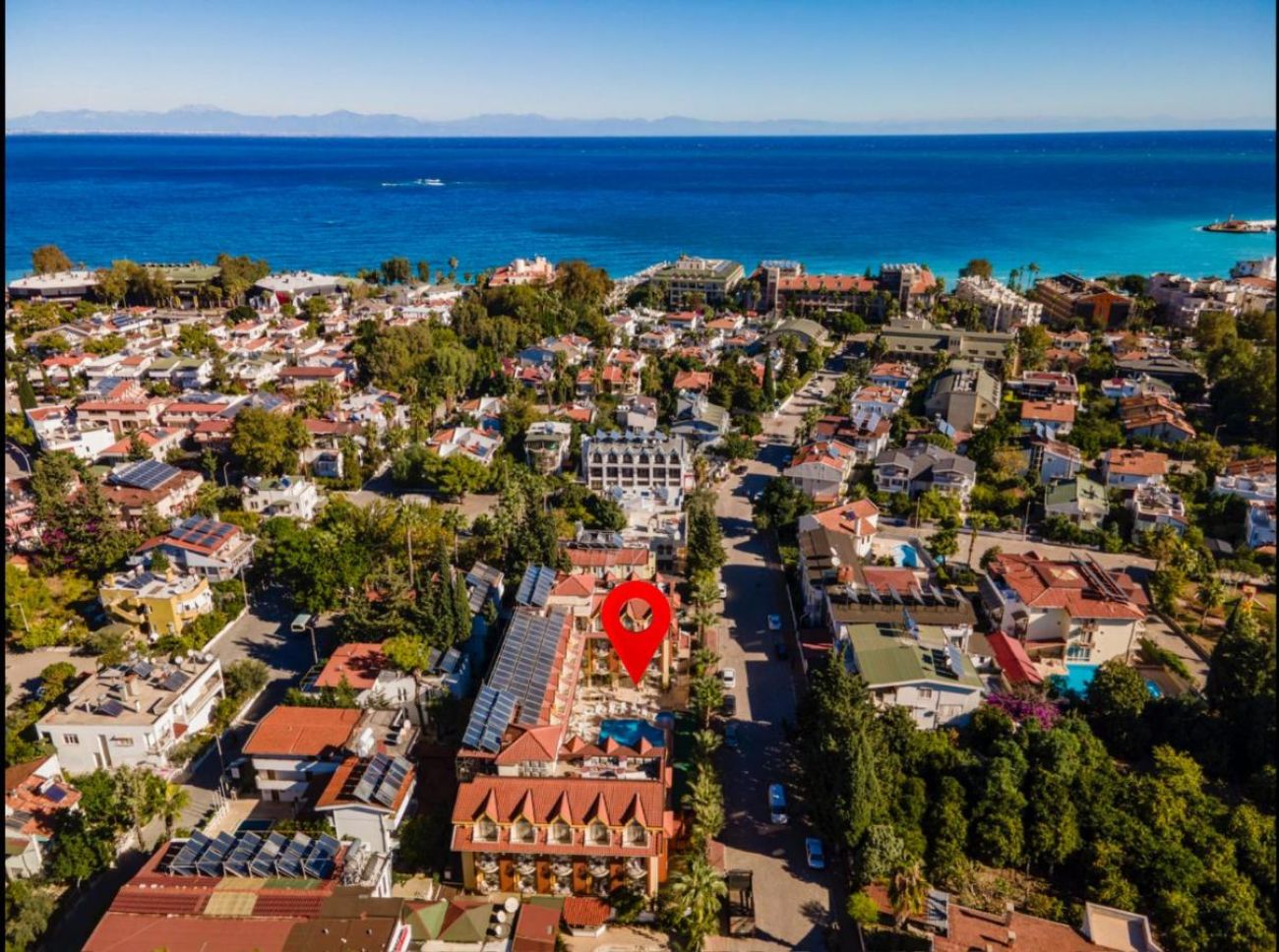 Хотелът е разположен на 55 км. от Анталия, на 100 м. центъра на Кемер, на 220 м. от брега на морето. Построен през 2006 г. с обща площ 2100 м2.