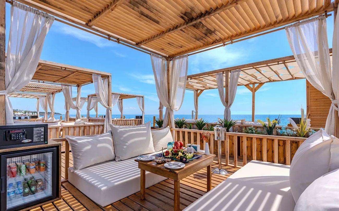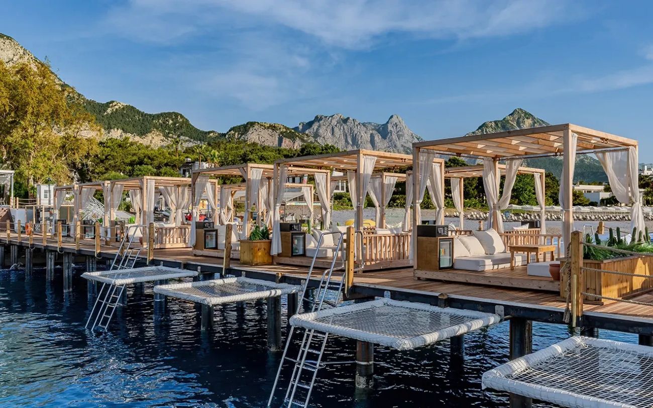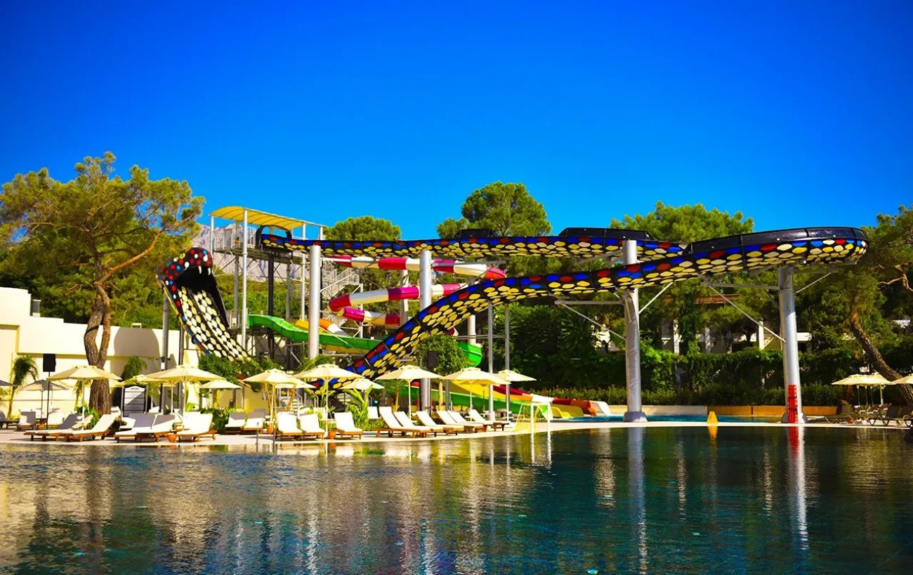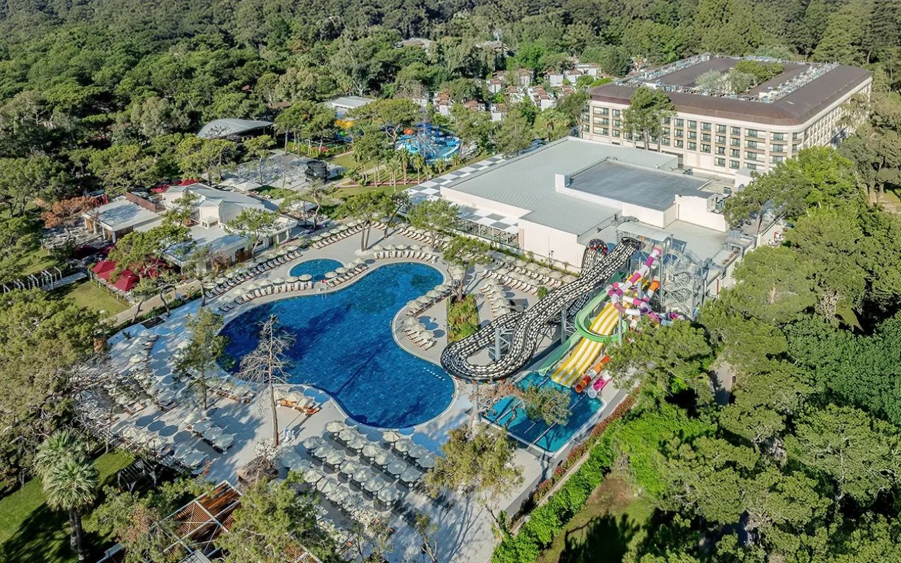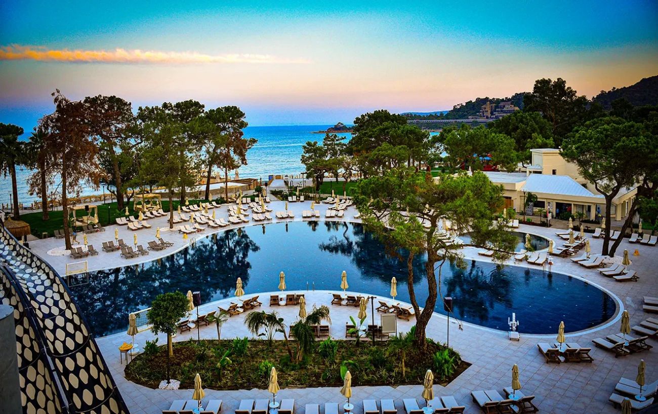 Намира се на 52 км от летище Анталия, на 45 км от центъра на Анталия, на 5 км от центъра на Кемер, на брега на морето. Изцяло реновиран през 2024 г., на обща площ от 60 000 м2.