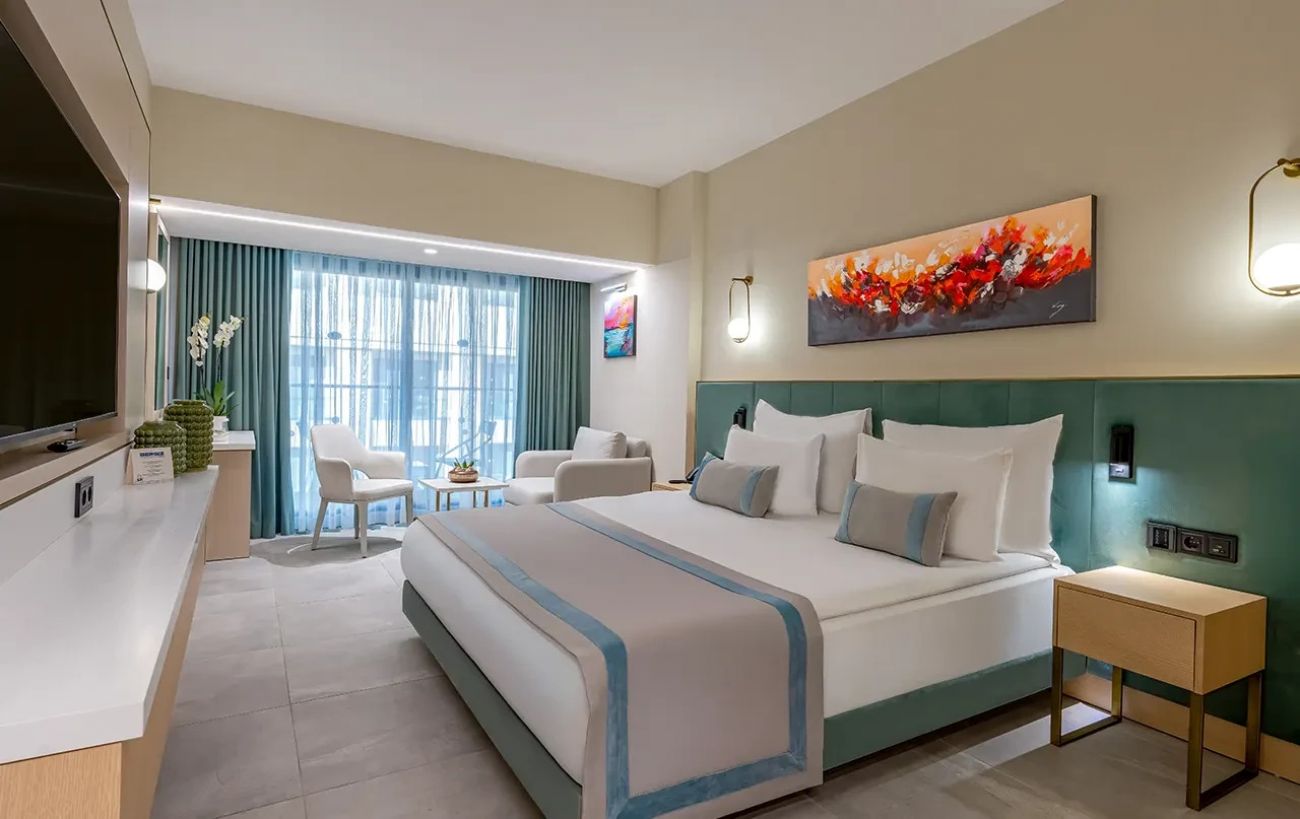 Стаи Main Building - Atrium room (изглед градина - 33 м2); Deluxe room (изглед градина, планина или море – 36 м2), Deluxe Superior room (спалня, единично и допълнитлено легло, изглед градина, планина или море,– 38 м2), Deluxe Superior Family (две помещения, спалня и две единични легла, две бани, 2 балкона, изглед градина или планина – 71 м2), Deluxe room (изглед градина или планина – 36 м2), Deluxe Family (две помещения, спалня и двуетажно легло, две бани, изглед градина – 58 м2).