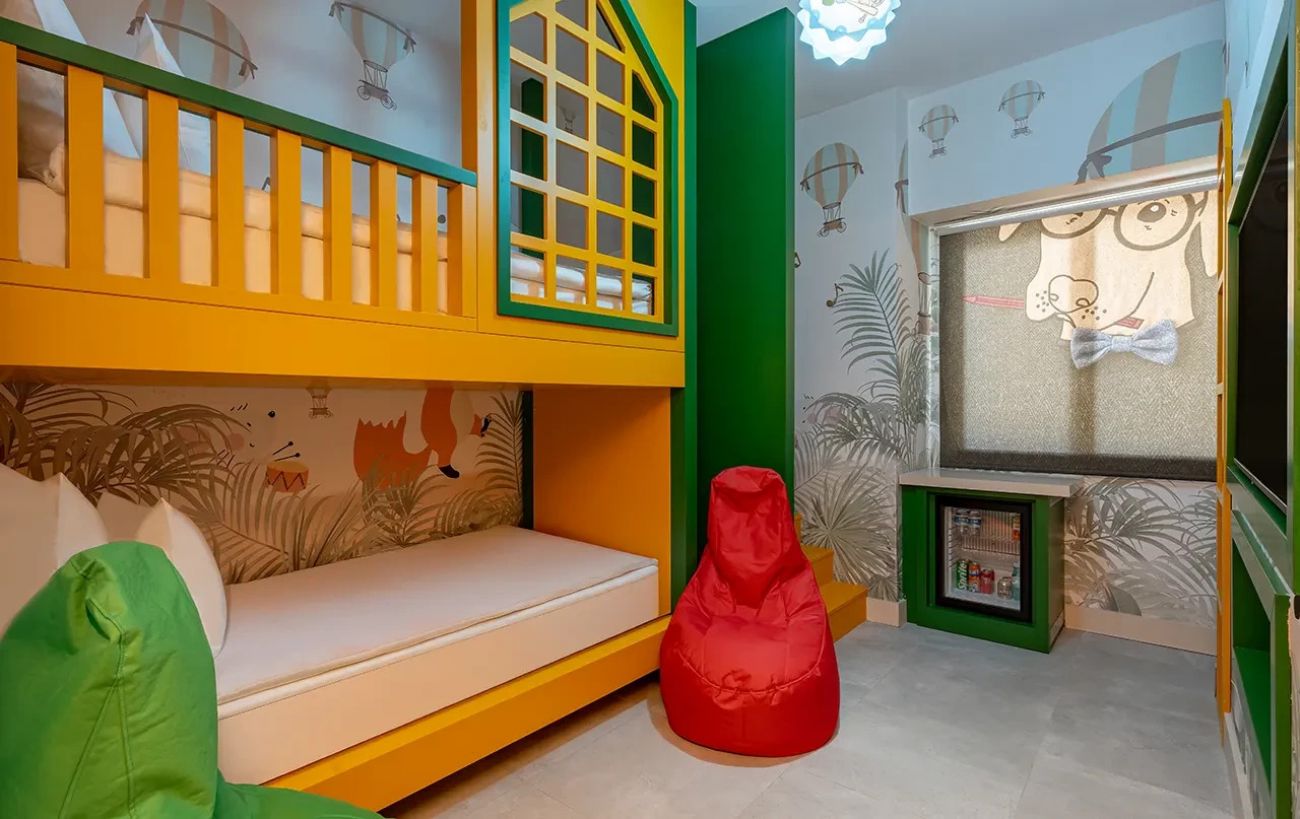 За децата: детски басейн, детски аквапарк, детска площадка, мини клуб (4-12г), тийн клуб (13 – 18г), мини диско, мини баскетбол, билярд, тенис на маса, детска анимация, стерилизатор за бебешко шише, детегледачка и детска количка – срещу заплащане.