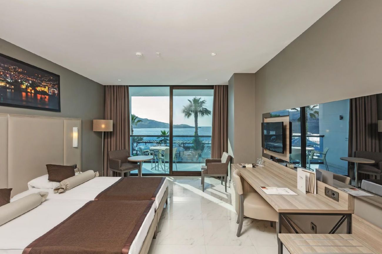 Хотелът разполага общо с 289 стаи - Premium Sea View (30-32 кв.м.), Superior Sea View (24-28 кв.м.), Guest Room (18 кв.м.), Family Room Sea View (40 кв.м.), Family Room Land View (35 кв.м.).