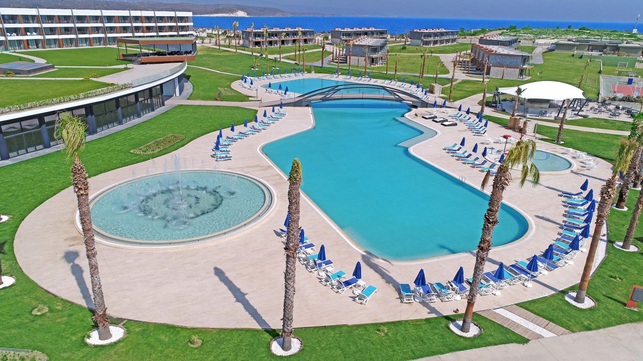 Хотелът се намира на 90 км от летище Измир, на 7 км от центъра на Алачатъ, на 17 км от центъра на Чешме, на 70 км от центъра на град Измир и на 90 км от летище Аднан Мендерес. Построен на площ от 80 966 m2, Разположен е в залив, заобиколен от очарователнатa природа на региона и уникалната красота на синьото на Егейско море. Просторен, стилен и удобен хотел, предлагащ всичко неоходимо за много моменти на спомени и незабравими мигове.