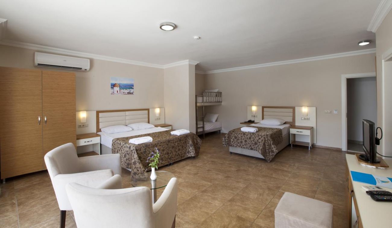 Хотелът разполага с общо 90 стаи. Всички стаи са оборудвани с климатик, телевизор, телефон, баня, сешоар, минибар, сейф, балкон. Хотелът разполага с 70 (Standard Room 17-25 м²) и 20 (Large Room 32-40 м²). Почистване на стаите - всеки ден, смяна на спалното бельо и кърпи - 3 пъти на седмица.